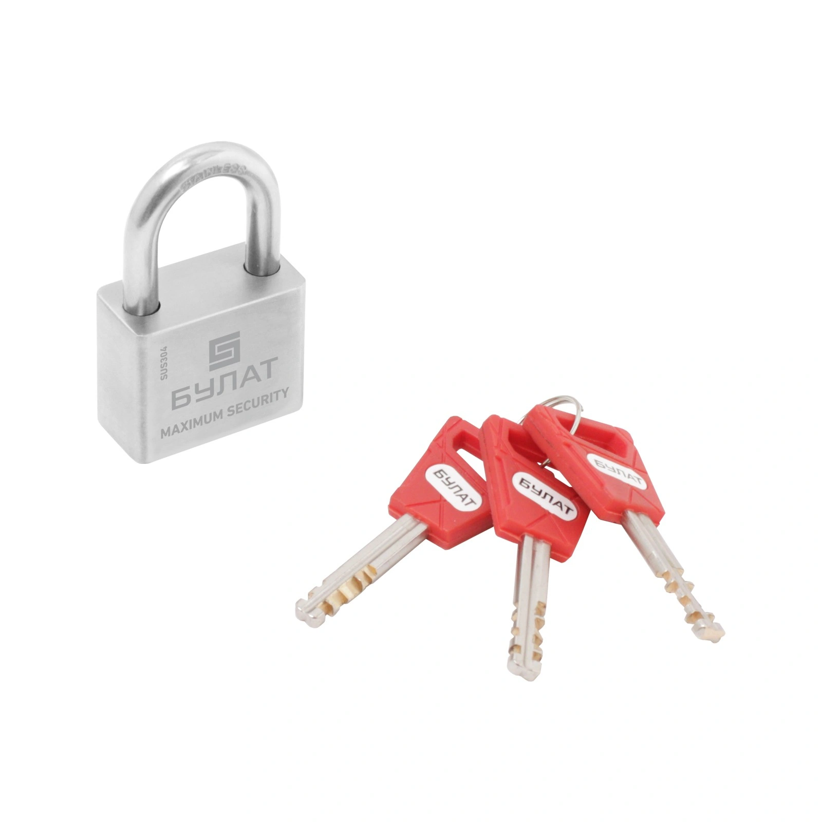 Дужка из нержавеющей стали диаметром 7 мм., с гальваническим покрытием. Твердость 61 HRA. Двойной механизм фиксации дужки замка с помощью шариков из нержавеющей стали. Устойчивость на вытягивание 15000 H.
