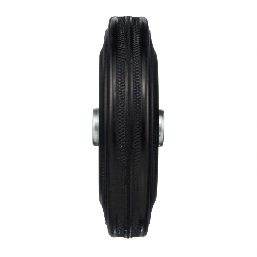 Колесо 4000-125, диаметр125 мм., грузоподъемность 100кг., резина, металл, под ось 15 мм. Колесо из черной литой резины. Центр из стального оцинкованного обода из штампованной стали. В оси колес роликовый подшипник. Колеса из черной резины, центр из двух гальванизированных дисков из штампованной стали. Роликовый (игольчатый) подшипник расположен в углублении, выдавленном под прессом, и содержит цилиндрические ролики подшипника. Возможно применение на относительно грубых полах складов, заводов, производственных и строительных площадках. Данные колеса можно использовать на неровных поверхностях, во влажной окружающей среде и использовании вне помещения, не рекомендуется применять в среде с органическими растворителями, хлорированными веществами, гидрокарбонатами и минеральными маслами. Температура эксплуатации от -20 до +70С.
