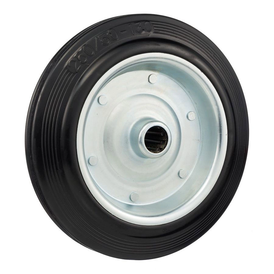 Колесо под ось 25мм. 4000-250, диаметр 250мм., грузоподъемность 210кг., резина, металл. Колесо из черной литой резины. Центр из стального оцинкованного обода из штампованной стали. В оси колес роликовый подшипник. Колеса из черной резины, центр из двух гальванизированных дисков из штампованной стали. Роликовый (игольчатый) подшипник расположен в углублении, выдавленном под прессом, и содержит цилиндрические ролики подшипника. Возможно применение на относительно грубых полах складов, заводов, производственных и строительных площадках. Данные колеса можно использовать на неровных поверхностях, во влажной окружающей среде и использовании вне помещения, не рекомендуется применять в среде с органическими растворителями, хлорированными веществами, гидрокарбонатами и минеральными маслами. Температура эксплуатации от -20 до +70С.