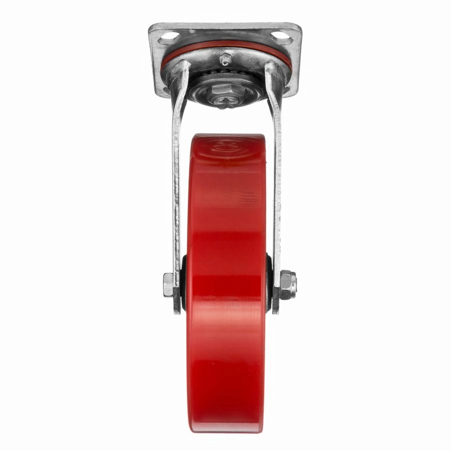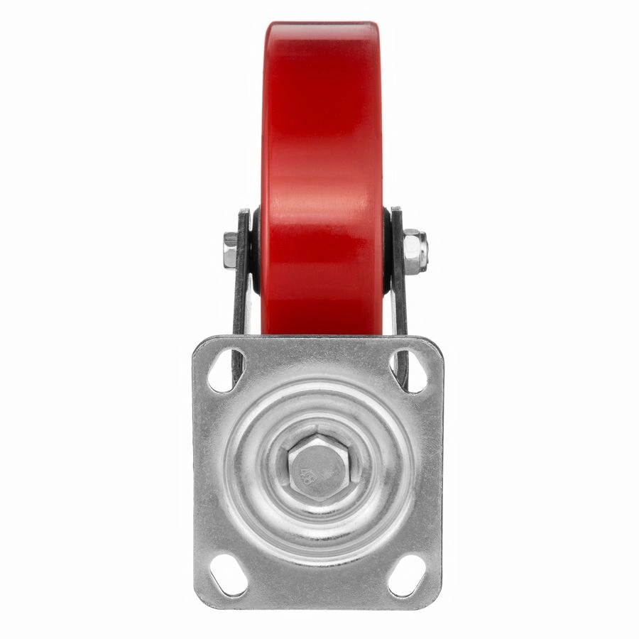 Колесо 1043-200, диаметр 200мм., чугун или полиуретан, поворотное, игольчатый подшипник. Грузоподъемность 460кг. Колесо полиуретановое, центр из литого чугуна. В оси колеса-игольчатый подшипник. Поворотный кронштейн имеет двурядный подшипник. Наличие масленки позволяет периодически обслуживать колесо. Крепление площадка под 4 болта. Колеса полиуретановые с чугунным сердечником широко применяются на бетонных полах преимущественно внутри помещений. Широко используются на тележках, строительных лесах и другом оборудовании, где требуется высокая грузоподъемность. при длительном нахождении под большой нагрузкой не деформируются. Возможно использование вне помещении на твердых покрытиях. Температура эксплуатации от -20 до +50С.