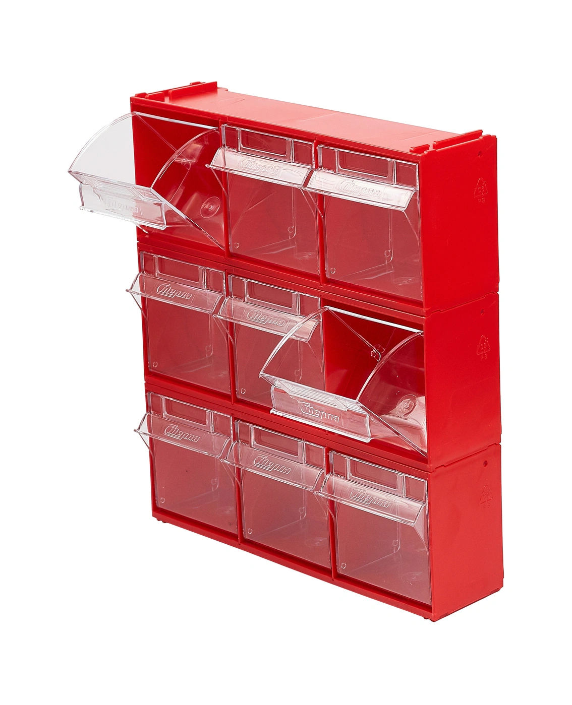 Короб откидной Стелла-техник F-300-3 (300х96х112мм.), красный, прозрачный, служит для хранения мелкоштучных предметов. Данная система хранения не подвержена случайному опрокидыванию. Откидные стандартные ячейки обеспечивают быстрый доступ к необходимым предметам. В случае необходимости полного высыпания или наполнения внутренние ячейки легко извлекается. Полезный внутренний размер ячеек 88х65х70мм. Специальный пластик, из которого выполнен короб, выдерживает значительные нагрузки и обладает оптимальной эластичностью. На основе данных коробов можно сформировать многоярусную систему хранения, выстраивая вертикально. Данный короб, через отверстия на задней стенке, легко можно прикрепить к стене или установить на специальные кронштейны (Артикул: Кронштейны-FOX-750). Обзорность содержимого сквозь прозрачные внутренние ячейки, наличие отсека для информационных бирок, легкое извлечение внутреннего короба для опустошения и наполнения, все это является неоспоримым преимуществом откидных коробов серии F. Температура эксплуатации от -10 до +70С.