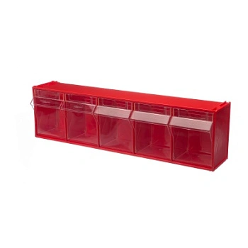 Короб откидной СТЕЛЛА-103 (600х140х168мм.) 5 ячеек, красный, прозрачный, служит для хранения мелкоштучных предметов. Данная система хранения не подвержена случайному опрокидыванию. Откидные ячейки обеспечивают быстрый доступ к необходимым предметам. В случае необходимости полного высыпания или наполнения короб легко извлекается. Полезный внутренний размер каждой ячейки 108х98х107мм. Специальный пластик, из которого выполнен короб, выдерживает значительные нагрузки и обладает оптимальной эластичностью. На основе данных коробов можно сформировать многоярусную систему хранения, в том числе, и с коробами других размеров, таких как СТЕЛЛА-101,102,104,F-600-9, F-600-6 и F-600-4. Преимущества: Обзорность содержимого сквозь прозрачные внутренние ячейки. Стандартный цвет наружной кассеты откидного короба-красный, внутренней-прозрачный. На внутреннем коробе есть специальный отсек для информационных съемных бирок. Легкое и быстрое извлечение внутреннего короба для опустошения или наполнения. Температура эксплуатации от -10 до +70С.