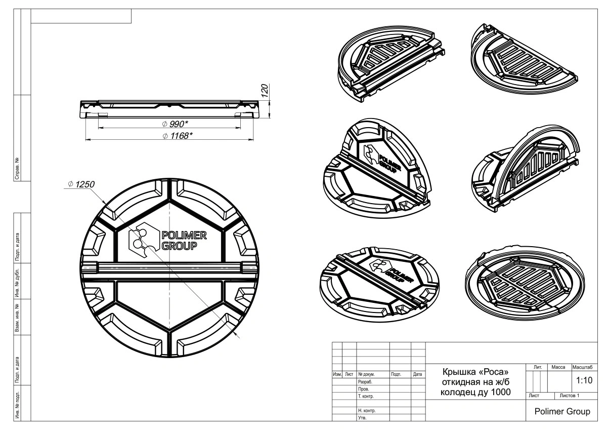 Складывающаяся пополам крышка для колодцев диаметром 1000 мм. Изготовлена из ударостойкого пластика.