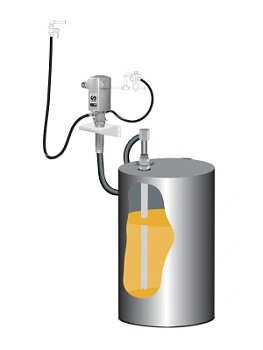 Настенный насос и комплект для перекачки позволяет быстро и без утечек заменить бочку.