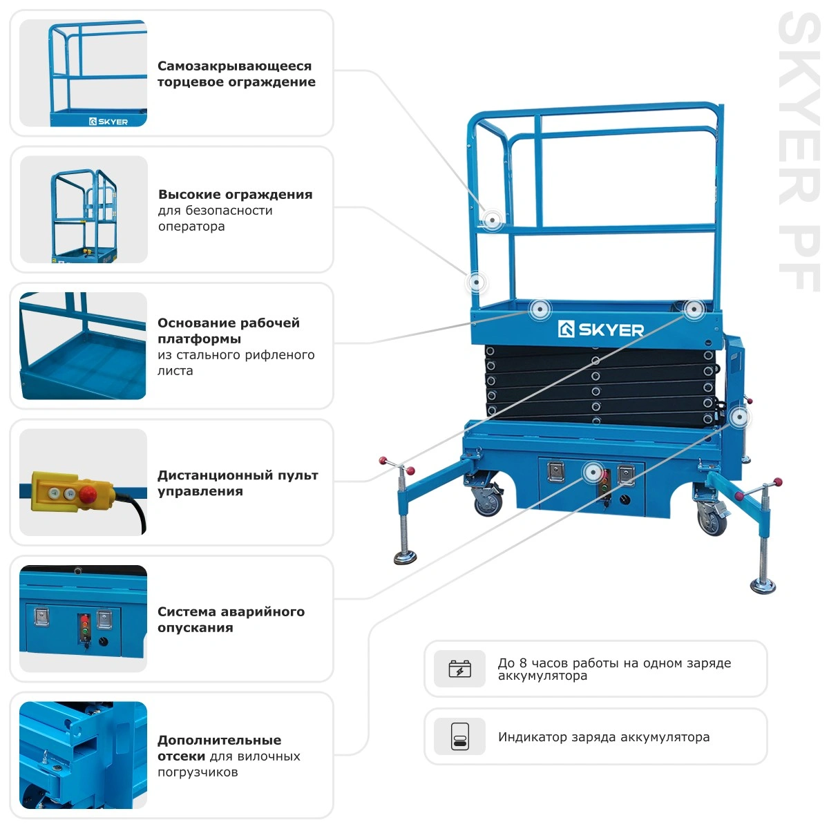 Ножничный подъемник PF0524 — компактный помощник для работы на высоте до 5 м!