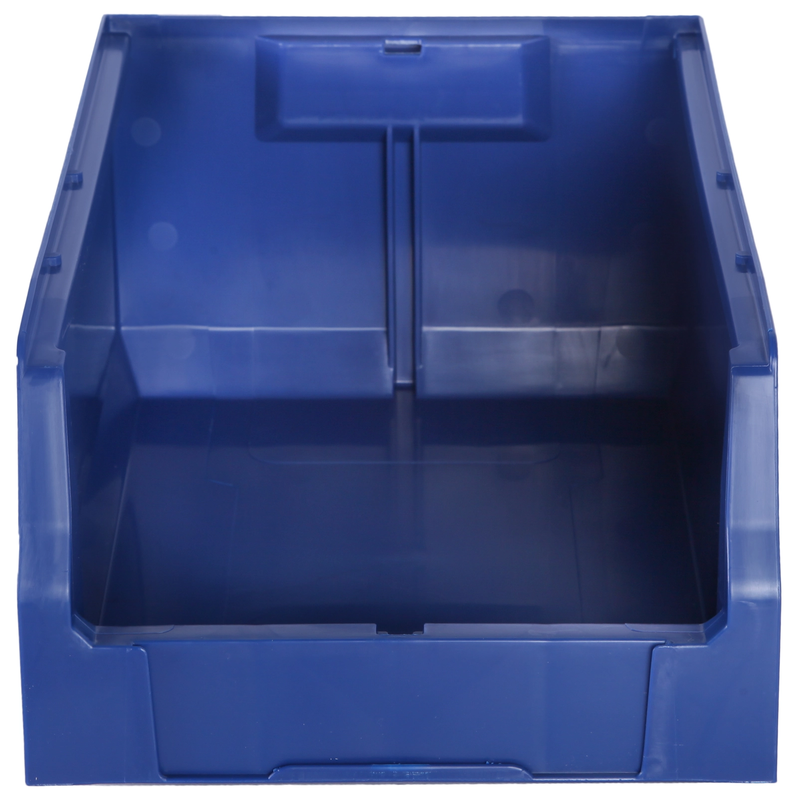 За счет убранных внутрь ребер жесткости контейнера достигается экономия пространства на 15%. Шероховатая поверхность дна предотвращает скольжение на стеллажах и лентах транспортеров, а специальный профиль придает прочность и жесткость боковым стенкам контейнера.