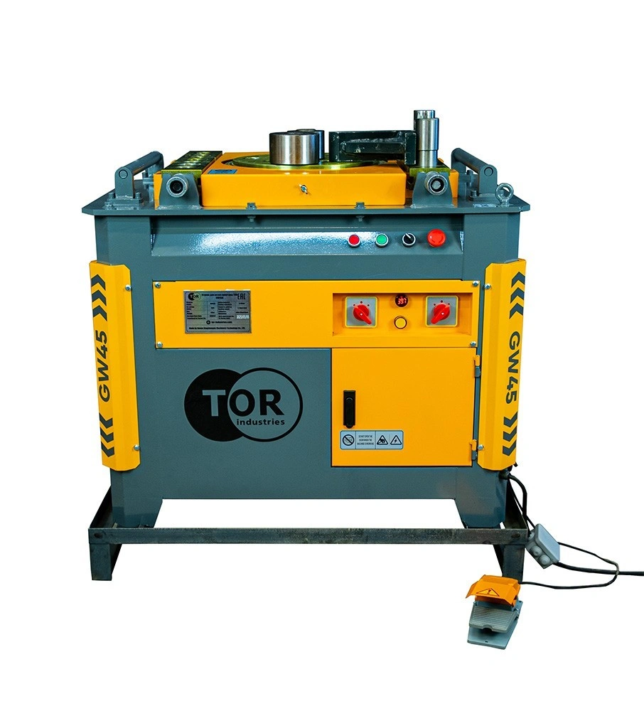 TOR GW45A PRO - точность, скорость и надёжность в гибке арматуры для профессионального строительства.Станок для гибки арматуры TOR GW45A PRO - профессиональное оборудование для высокоточной обработки арматуры диаметром до 45мм. Мощность 4 кВт обеспечивает стабильную работу даже при интенсивной эксплуатации. Система автоматического доводчика гарантирует точное завершение гибки без ручной корректировки. Регулируемые боковые упоры позволяют легко настраивать параметры под разные размеры заготовок. Прочная стальная конструкция и эргономичная панель управления делают станок незаменимым инструментом в условиях строительной площадки или цеха. !Параметры изгиба задается при помощи концевых выключателей, что увеличивает производительность и снижает кол-во брака. !Максимальный диаметр арматуры (ГОСТ 5781-82 и 10884-94) А1- 45мм, А3-40мм, А500С-28мм. !В комплекте набор гибочной оснастки для круглой арматуры. Модельный ряд с доводчиками PRO состоит из 2 станков для гибки арматуры диаметром до 36 и 45мм (А1).Где используется? - На строительных объектах для гибки арматуры в монолитном бетоне - В железобетонных цехах и на заводах ЖБИ - При возведении мостов, дорог и крупных промышленных объектов - Для производства каркасов и армирующих конструкций - В условиях, где требуется точная и быстрая гибка арматуры диаметром 45/40 мм Особенности конструкции: - Станок TOR GW45A PRO оснащен тремя приводными ремнями. - Твердый тип смазки в редукторе, увеличивает ресурс работы станка и снижает затраты на обслуживание. - Двигатели станков TOR GW PRO имеют функцию ручного растормаживания. Ручное растормаживание позволяет отпустить якорь тормоза к корпусу тормоза без подачи напряжения, тем самым освободив ротор электродвигателя. Данная функция подойдёт при ремонтно-наладочных работах, а также если при работе пропадает напряжение и необходимо освободить деталь при зажиме. - В электрическую часть управления станком входит 2 магнитных пускателя, на каждую сторону движения гибочного диска по 1 шт, а также термореле для безопасной работы оборудования и предотвращения выхода из строя основных узлов станка. - Розетка для педали управления имеет степень защиты IP54 и пониженное напряжения для безопасности оператора станка. Основные преимущества: - Мощность 4 кВт - обеспечивает надёжную работу с арматурой диаметром до 45 мм - Автоматический доводчик - повышает точность и скорость гибки, исключает ручную доводку - Регулируемые боковые упоры - быстрая настройка под разные размеры заготовок - Высокая производительность - до 8–10 гибок в минуту в зависимости от диаметра арматуры - Прочная стальная рама - выдерживает интенсивную эксплуатацию, не деформируется - Эргономичная панель управления - интуитивно понятные настройки, минимум обучения оператора - Надёжная система торможения - исключает перекручивание и повреждение заготовки - Минимальное техническое обслуживание - долгий срок службы без сложного ухода - Компактность - удобная установка даже в условиях ограниченного пространства