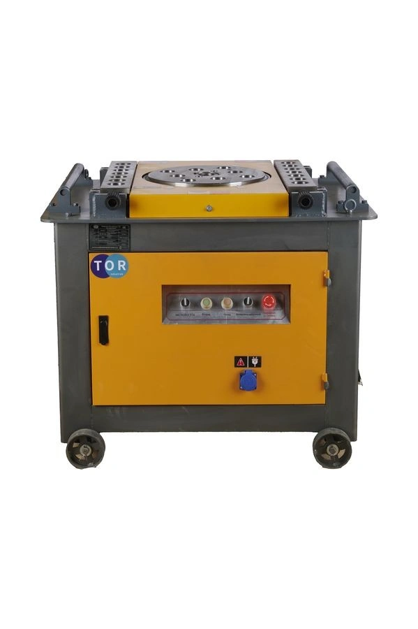 Станок для гибки арматуры TOR GW50A c доводчиком предназначен для выполнения точной гибки арматуры круглого и квадратного сечения. Оборудование обеспечивает формование заготовок заданной конфигурации с регулировкой углов и радиусов изгиба. Возможна работа как в ручном, так и в автоматическом режимах, что обеспечивает высокую производительность и качество обработки. ! Параметры изгиба задается при помощи концевых выключателей, что увеличивает производительность и снижает кол-во брака. ! Максимальный диаметр арматуры (ГОСТ 5781-82 и 10884-94) А1- 50мм, А3-42мм, А500С-38мм. ! В комплекте набор гибочной оснастки для круглой арматуры. Модельный ряд с доводчиками состоит из 3 станков для гибки арматуры диаметром до 32, 40 и 50мм (А1). Где использовать? Рекомендуется для работы при строительстве крупных объектов, на заводах ЖБИ, на металлообрабатывающих предприятиях. Особенности TOR GW50A: - Возможность настроить угол изгиба арматуры для автоматической работы. - Автоматический возврат план-шайбы и освобождение арматуры - увеличивают скорость работы. - Простая и надежная конструкция требует минимальное техническое обслуживание. - Прочный стальной каркас с дополнительными ребрами жесткости. - Набор гибочной оснастки в комплекте. - Ножная педаль для дополнительного удобства работы. - Двигатель мощностью 4кВт. - Работа от сети 380В 50гЦ. - Возможность использовать при температуре до -10° С. - Сниженное потребление электроэнергии при работе. - Оборудование оснащено стальными колесами и строповочными проушинами для удобства и безопасности при перемещении станка. - Высокое качество окраски.
