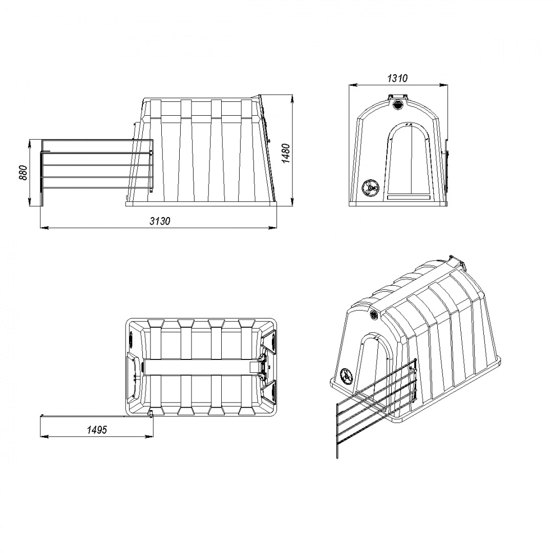 Необходима для дооборудования вольеров с совмещенной боковой стенкой крайним замыкающим элементом в ряду домиков.