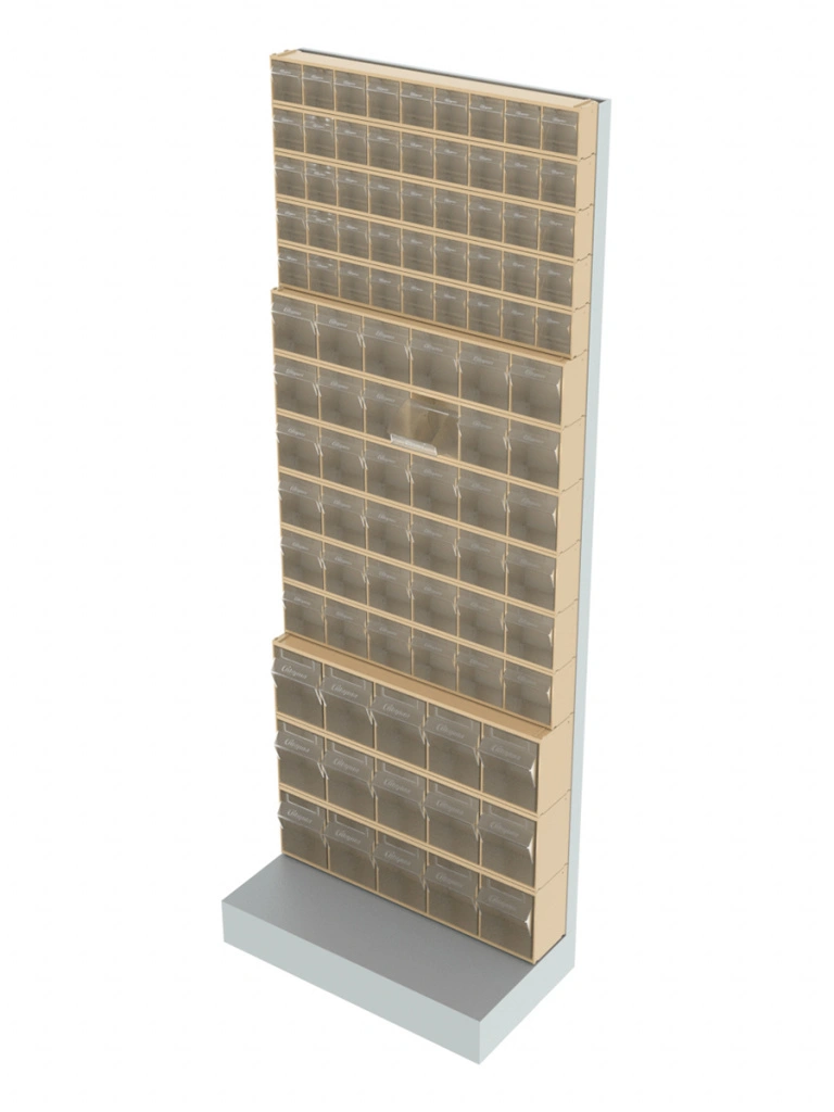 Стойка бежевая напольная Стелла-техник 404-05-06-03-B (610х325х1650) представляет собой удобную систему хранения на основе откидных коробов. Стойка подойдет для выставочных залов, магазинов, офисов, складов. Комплектация: Рама FOX (610х325х1650) V404 напольная односторонняя с основанием - 1 шт.; Короб откидной Стелла-техник F-600-9 , 600х68х78мм, 9 ячеек, красный, прозрачный -5 шт.; Короб откидной Стелла-техник F-600-6 , 600х96х112мм, 6 ячеек, красный, прозрачный – 6 шт.; Короб откидной Стелла-техник F-600-5 , 600х140х168мм, 5 ячеек, красный, прозрачный – 3 шт.; Упаковка. Преимущества: Металлическое основание; Значительная устойчивость; Хорошая вместимость; Длительный срок службы.