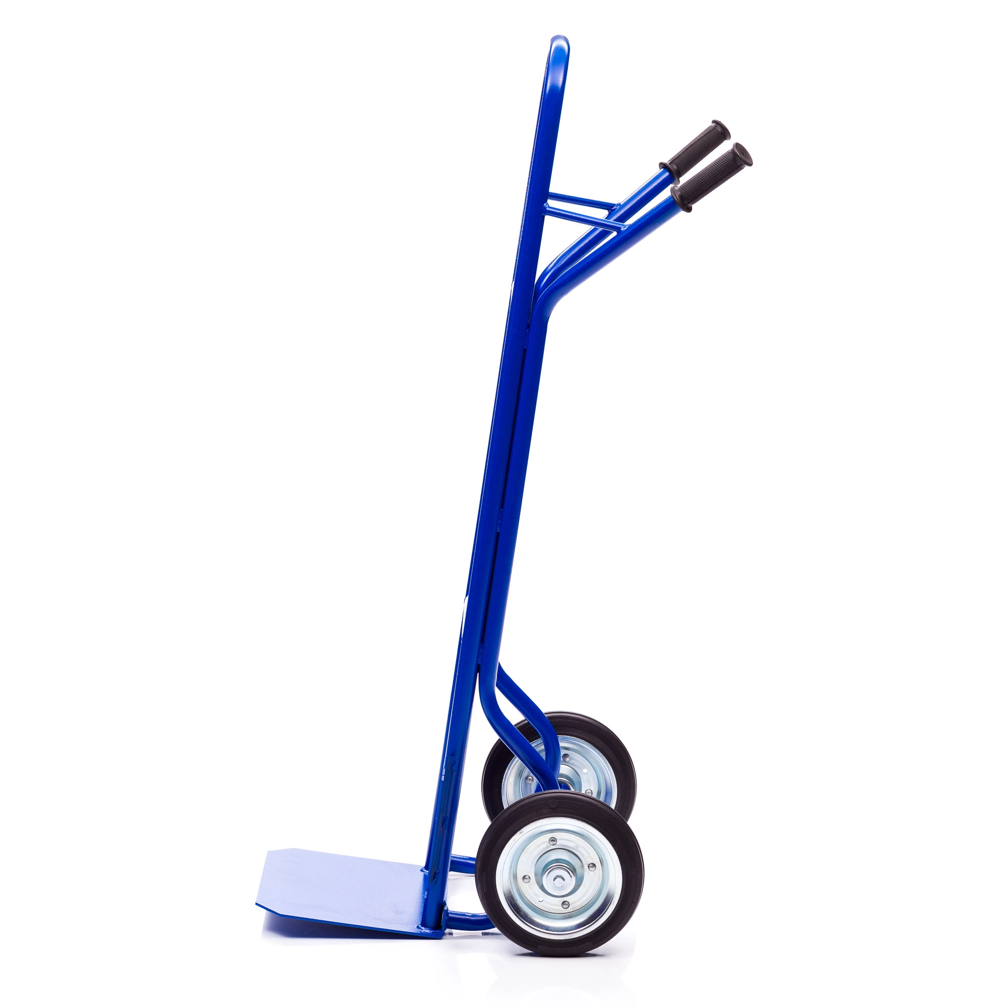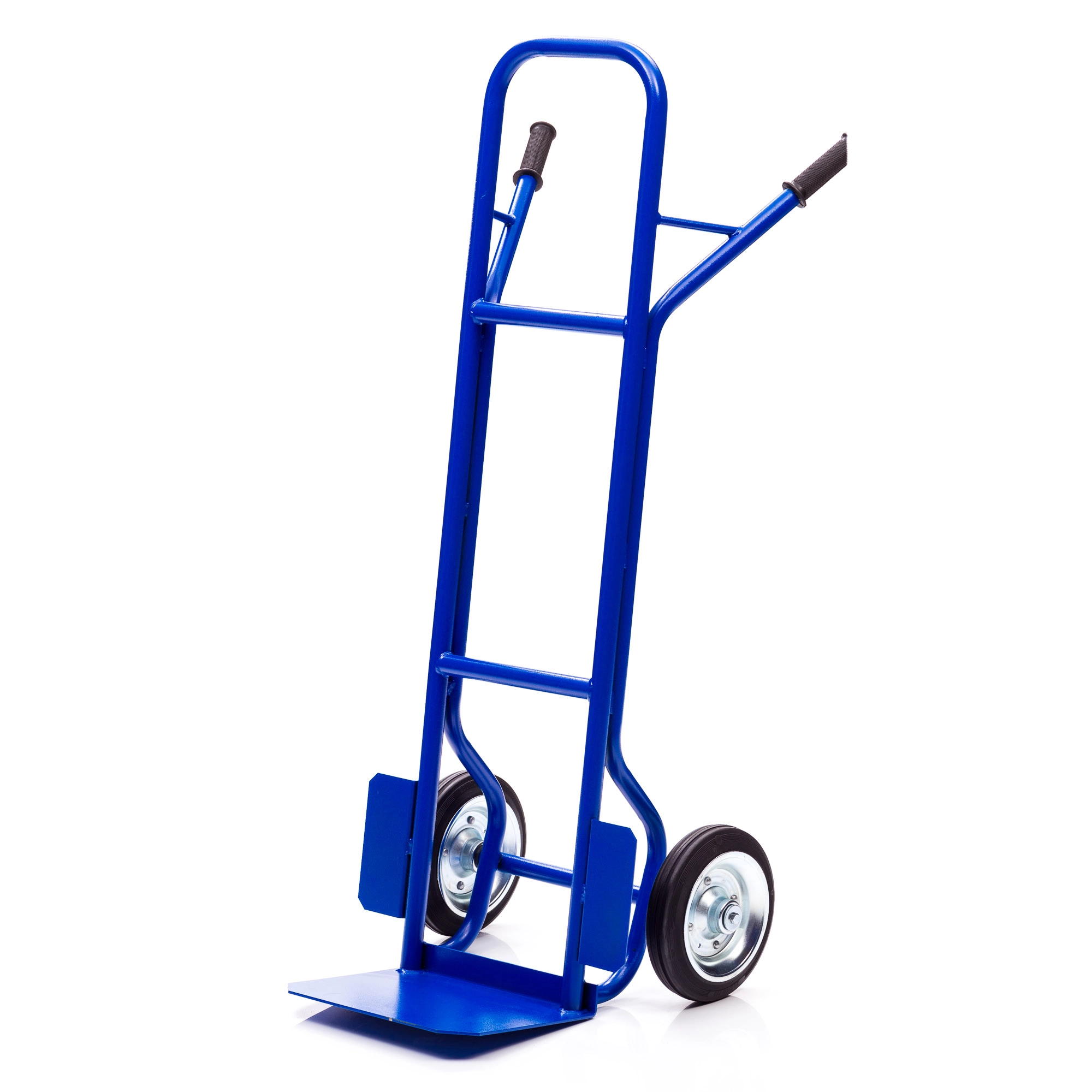 Грузовая 2-х колесная тележка КГ-250-250-И предназначена для перевозки грузов весом до 250кг. Надежная металлическая, цельносварная конструкция тележки изготовлена из трубы круглого сечения. Диаметр трубы 30мм., толщина металла 1,5мм. Ручки выполнены из трубы диаметром 28мм., толщиной 1,5мм. и оснащены резиновыми наконечниками для удобной работы в складских помещениях, на производстве, а также в бытовых целях. Грузовая площадка размером 350х250мм. обеспечивает устойчивое и надежное положение груза при транспортировке. Площадка выполнена из листа металла толщиной 4мм., что позволяет перевозить грузы весом до 250кг. Покрытие полимерное. Цвет - синий, шагрень. Основные преимущества Тележки КГ-250-250-И: прочная металлическая конструкция, небольшой вес, малые габариты, удобные прорезиненные ручки, устойчивость и маневренность выгодно отличают её от других аналогов. Тележка комплектуется: метизами для крепления, промышленными колесами из черной стандартной резины, от всемирно известного, ведущего итальянского производителя Tellure Rota, диаметром 250мм.