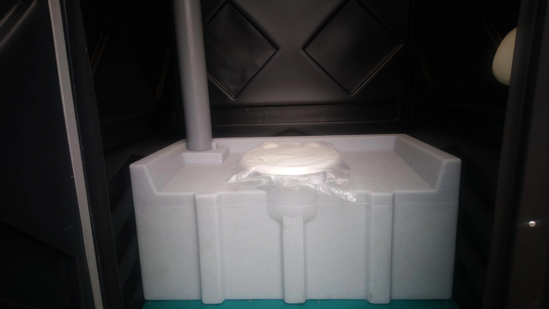 накопительный бак-резервуар открытого типа на 250 литров. Вместо установленного унитазного сидения бак оснащен специальной рифленой площадкой дл ног. Функционально и внешне, накопительный бак резервуар второго типа является аналогом, так называемой чаши Генуя