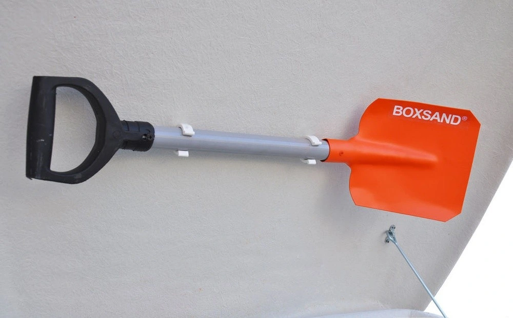 - Фирменная совковая лопата BOXSAND (стальное полотно, дюралюминиевый черенок, полимерная рукоятка)